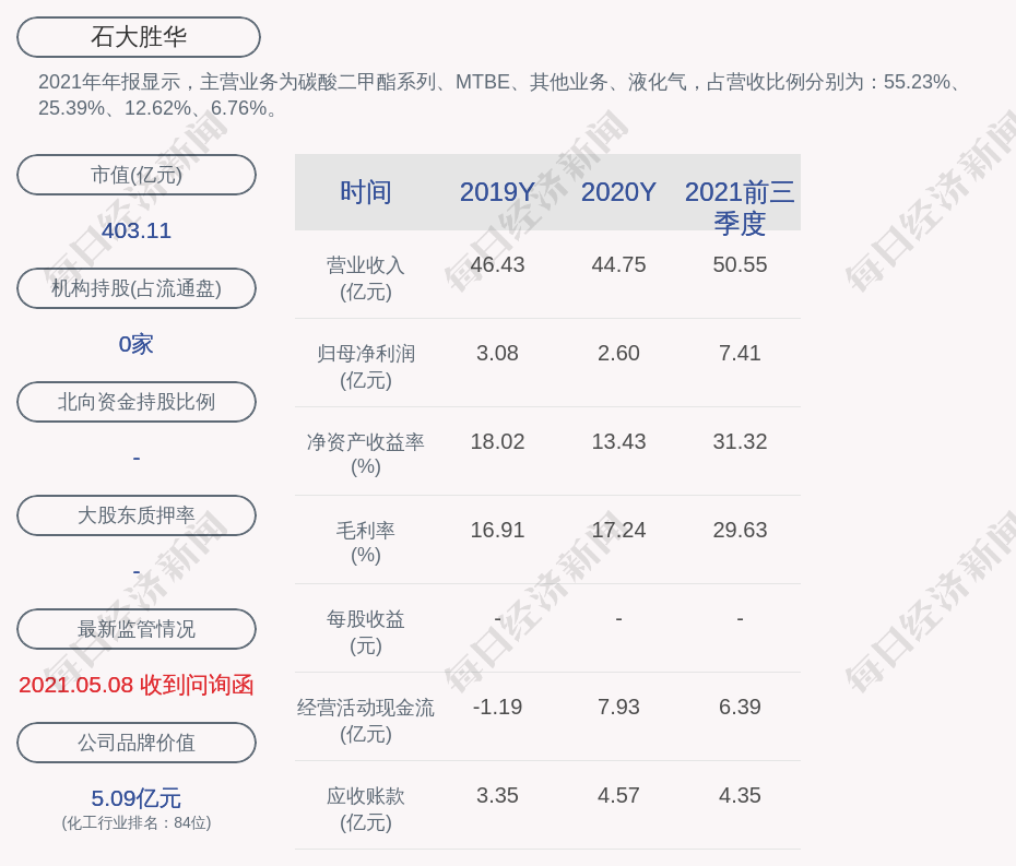 2. 石大勝華在近3個(gè)交易日下跌21.08%,所屬化工板塊同期下跌2.66%,上證指數(shù)同期下跌1.38%。更多關(guān)鍵信息,請(qǐng)搜索“道達(dá)號(hào)”。