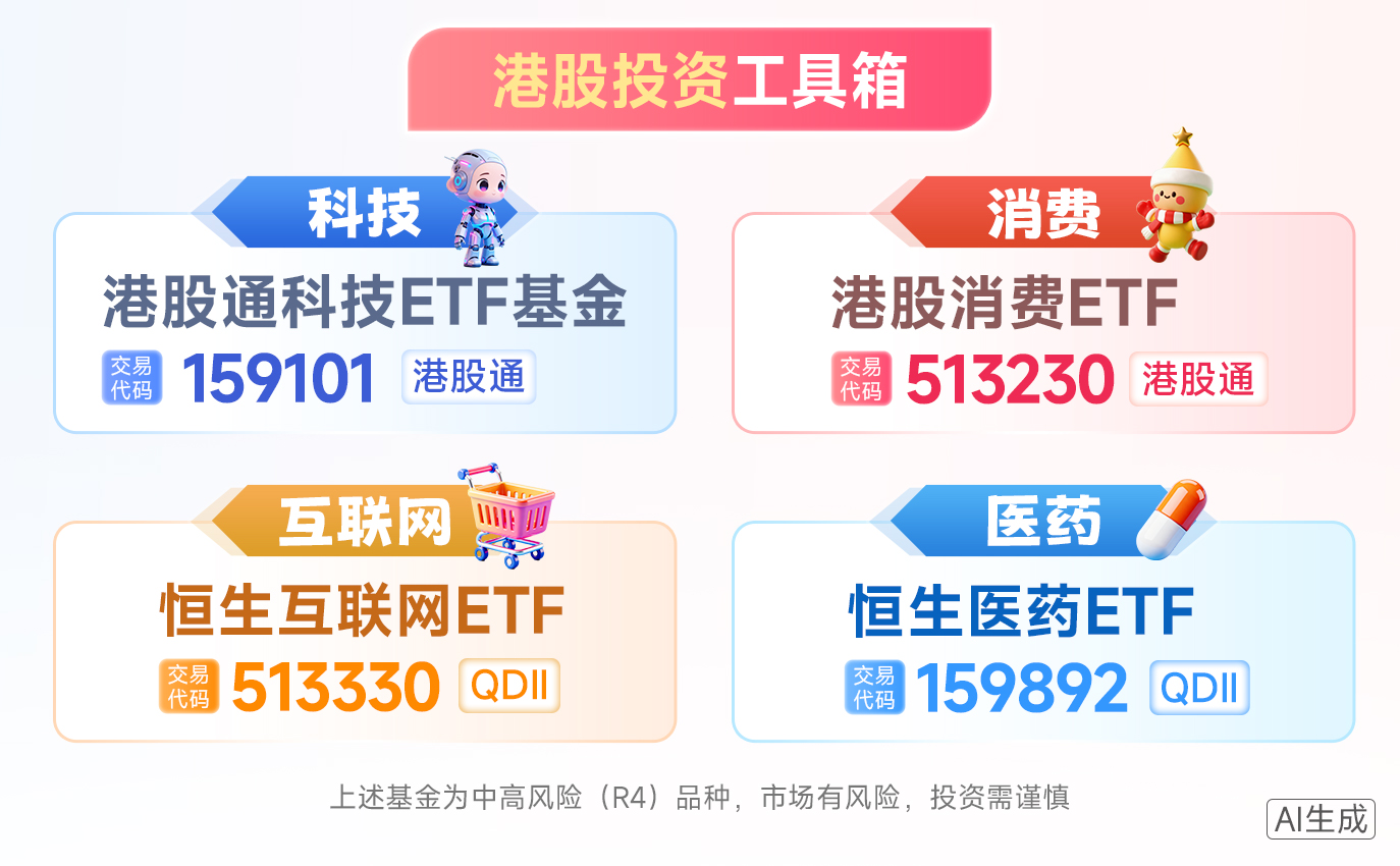 港股消費(fèi)ETF(513230)跟蹤中證港股通消費(fèi)主題指數(shù),一鍵打包互聯(lián)網(wǎng)電商龍頭+新消費(fèi),成分股近乎囊括港股消費(fèi)的各個領(lǐng)域,包括泡泡瑪特、老鋪黃金、名創(chuàng)優(yōu)品等新消費(fèi)龍頭,又包含騰訊、快手、阿里巴巴、小米等互聯(lián)網(wǎng)電商龍頭,科技+消費(fèi)屬性突出。