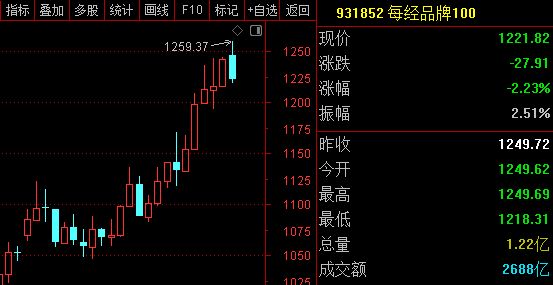 10月首周,A股市場迎來高位震蕩,每經(jīng)品牌100指數(shù)沖高1259點(diǎn)后出現(xiàn)回調(diào),本周最終下跌1.65%,以1221.82點(diǎn)報收。成分股中,??低?、中國中鐵以及中國中冶等6只個股周漲幅超5%。