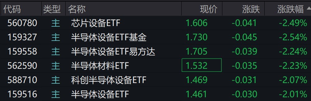 受盤面影響,多只半導(dǎo)體設(shè)備相關(guān)ETF跌超2%。