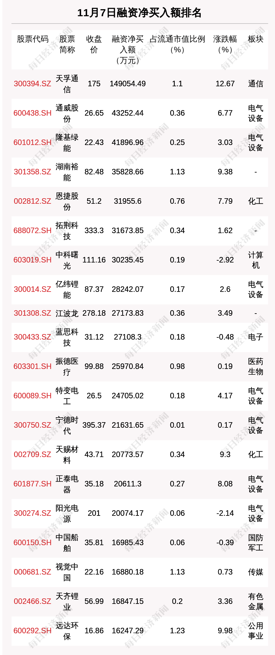 從融資資金凈買入金額來(lái)看,共有35只個(gè)股凈買入金額超億元,其中天孚通信、通威股份、隆基綠能排名前三,買入金額分別為14.91億元、4.33億元、4.19億元。